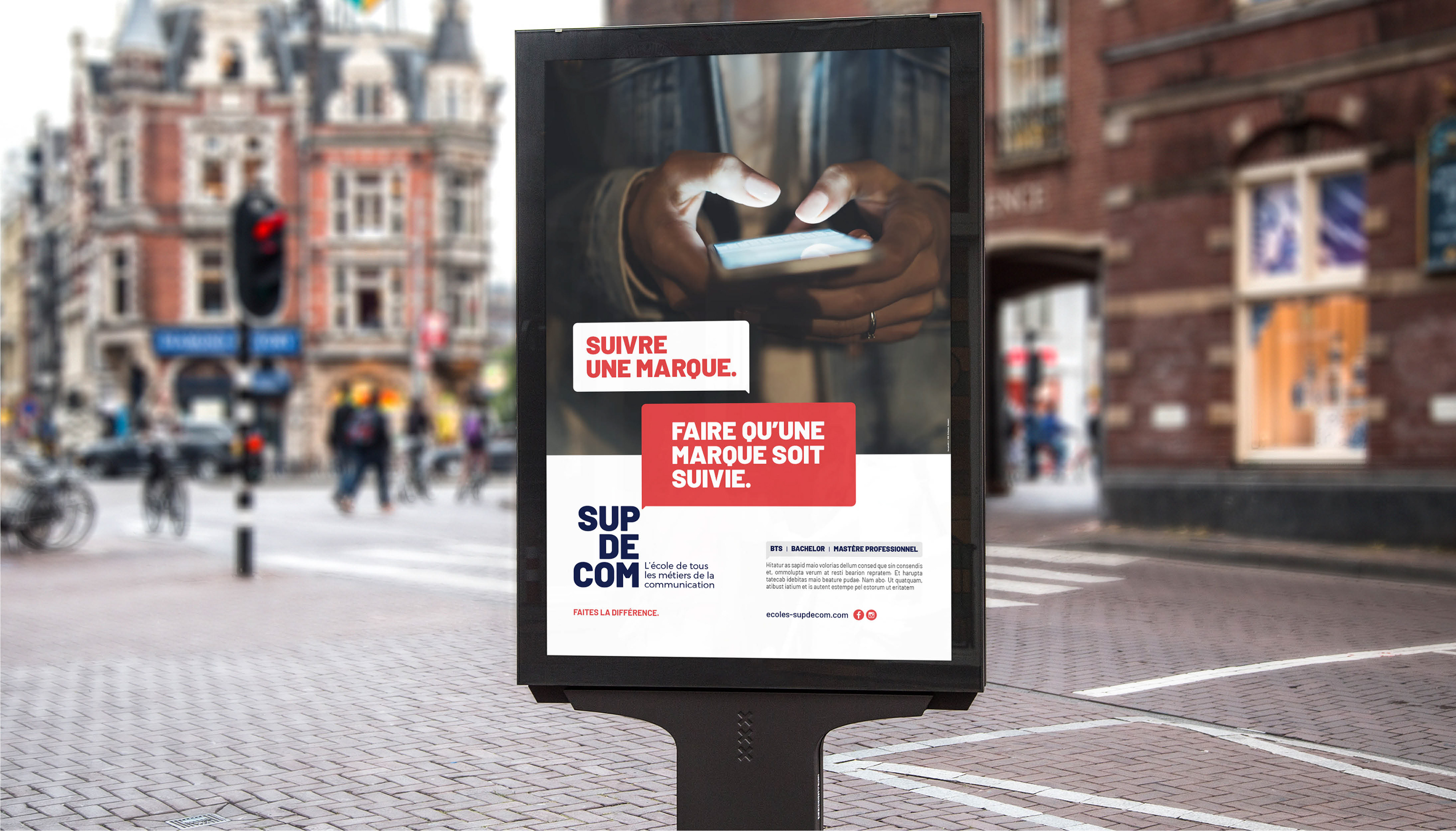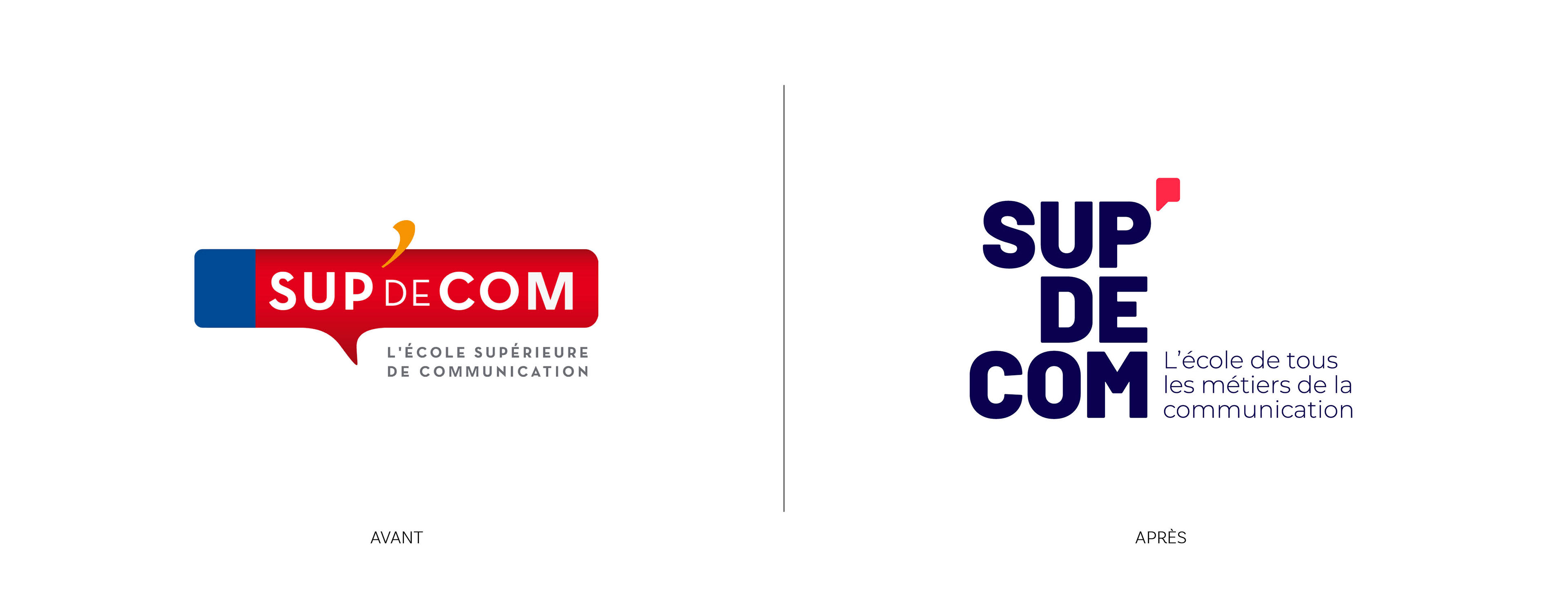 Affirmer le statut de premier réseau de communication en France de l'école Sup' De Com à travers une nouvelle identité graphique et une nouvelle plateforme de marque plus en adéquation avec les attentes des jeunes générations.